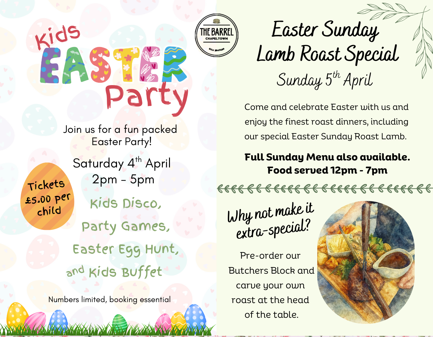 Kids Easter party tickets available from the bar and booking now being taken for Easter Sunday